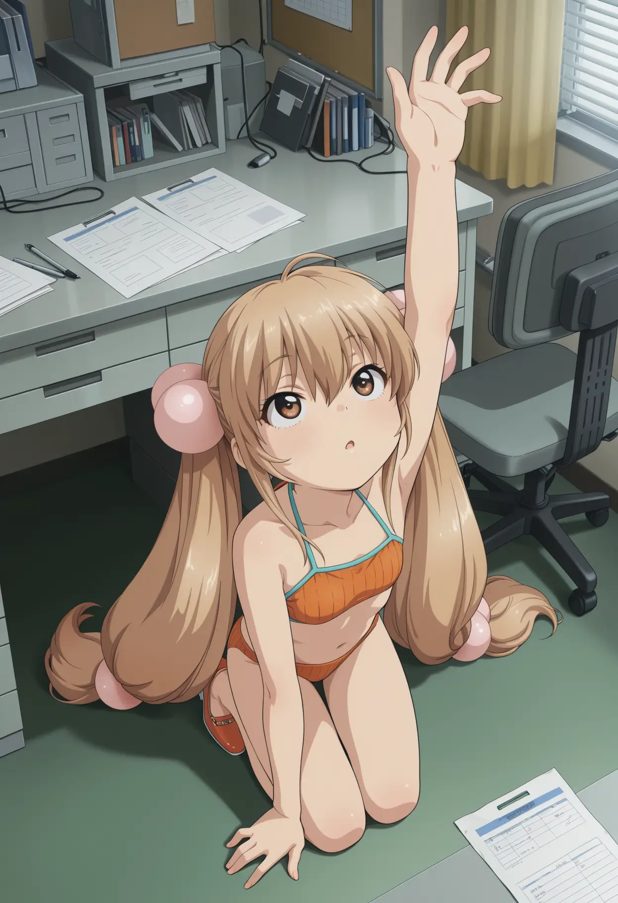 情緒動作 + 人物 + 服裝 + 隨機詞 + 正面提示詞