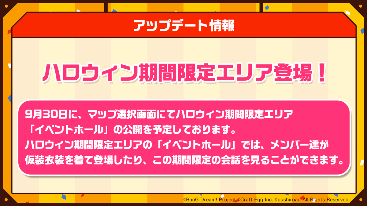 地圖將加開一個「活動會場」的期間限定場地,9/30開始會是以萬聖節為主題。