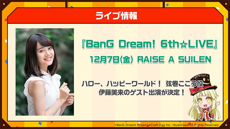 ・伊藤美來參戰「BanG Dream! 6th☆LIVE」