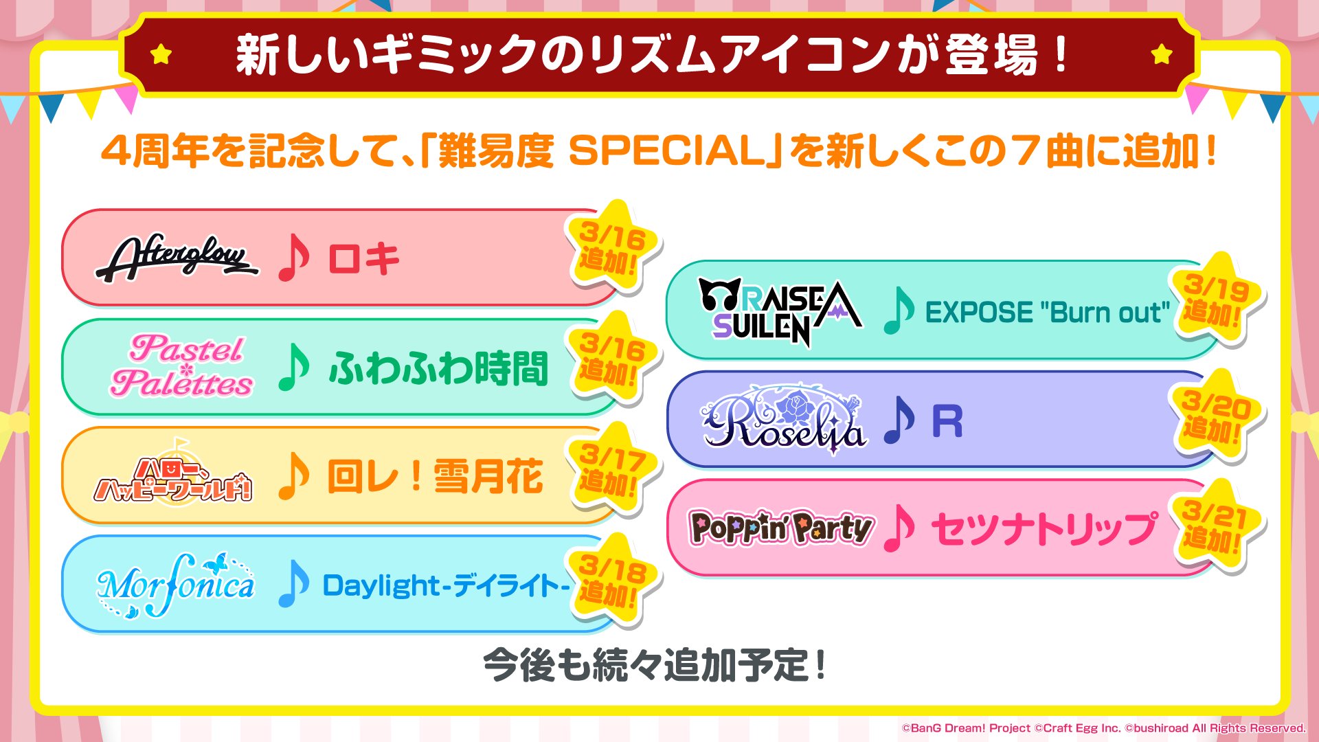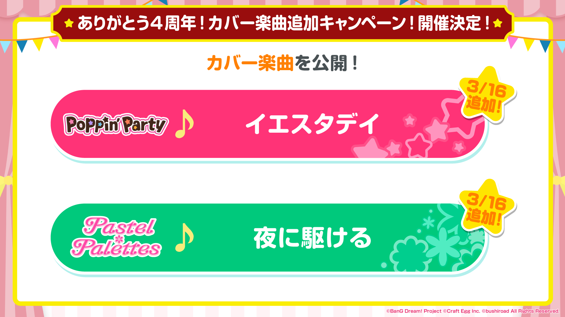 3/16追加 Poppin'Party『イエスタデイ』 Pastel*Palettes『夜に駆ける』