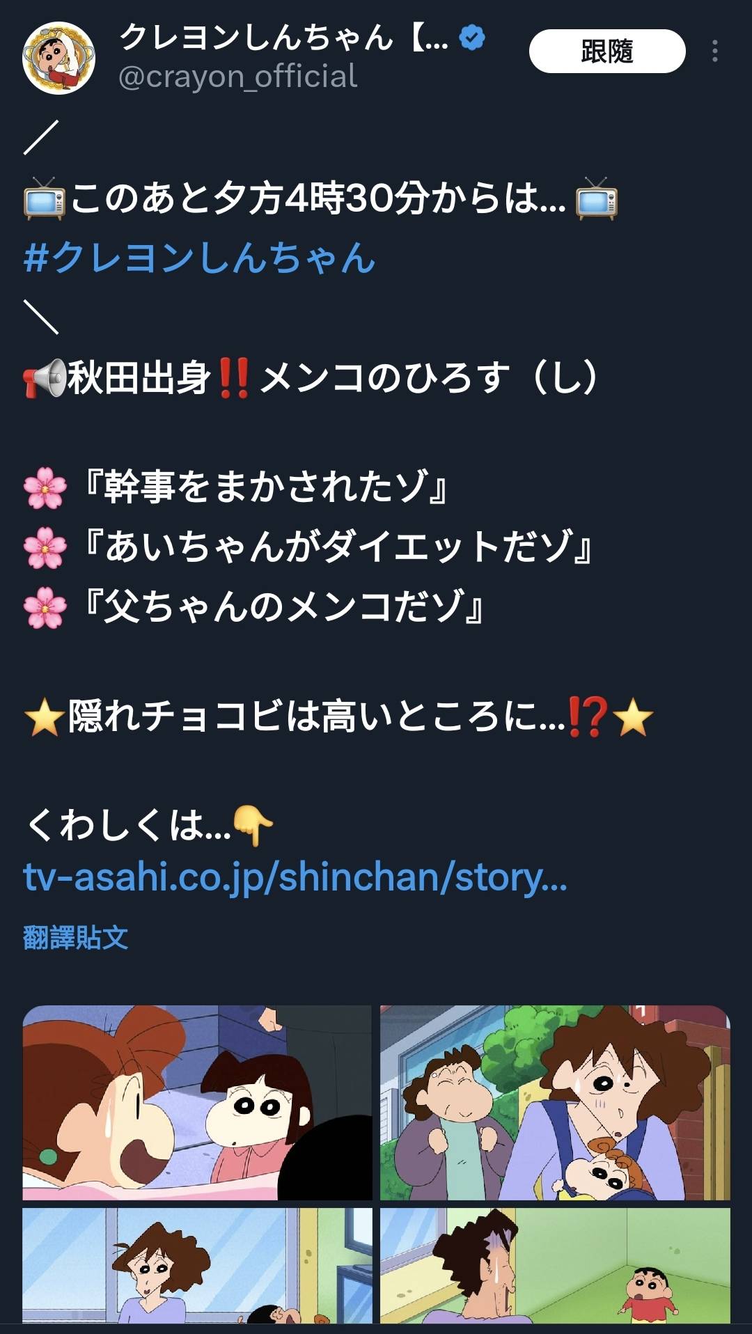 上週轉電視看朝日北海道台在播蠟筆小新