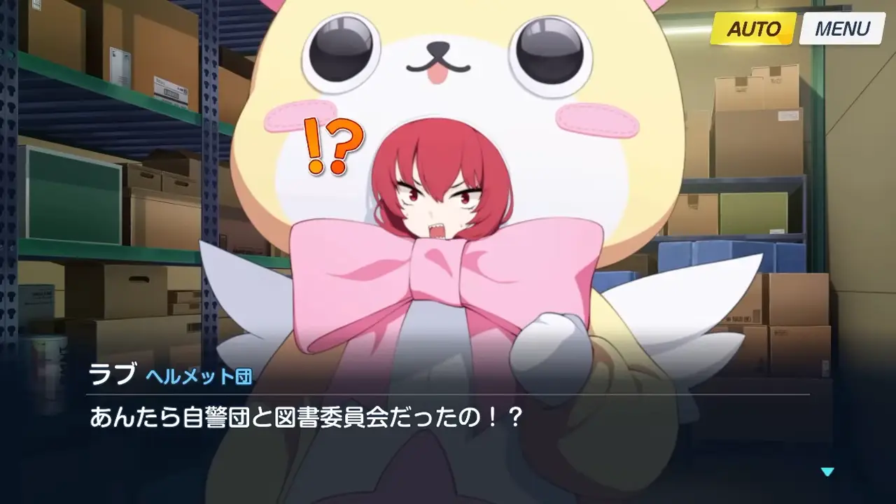 志美子「呀!?啊,對不起......啊,是鈴美?正好!舊圖書館的倉庫裡,有頭盔團的人