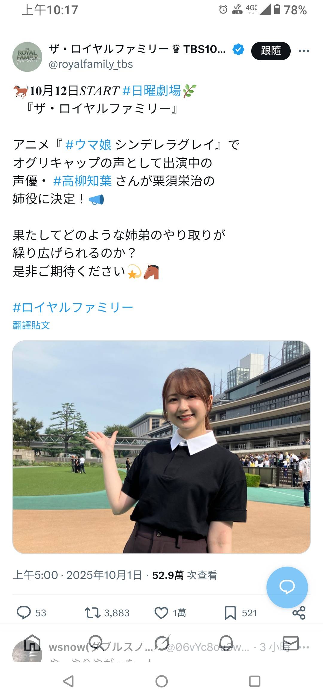 [馬娘] 小栗帽聲優高柳知葉出演賽馬日劇