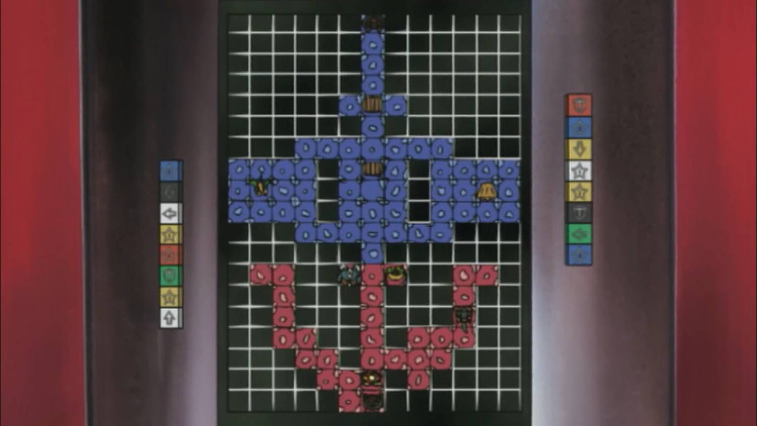 就貝卡斯與御伽的對局,有這一幕畫面,貝卡斯的檯面相當整齊對稱
