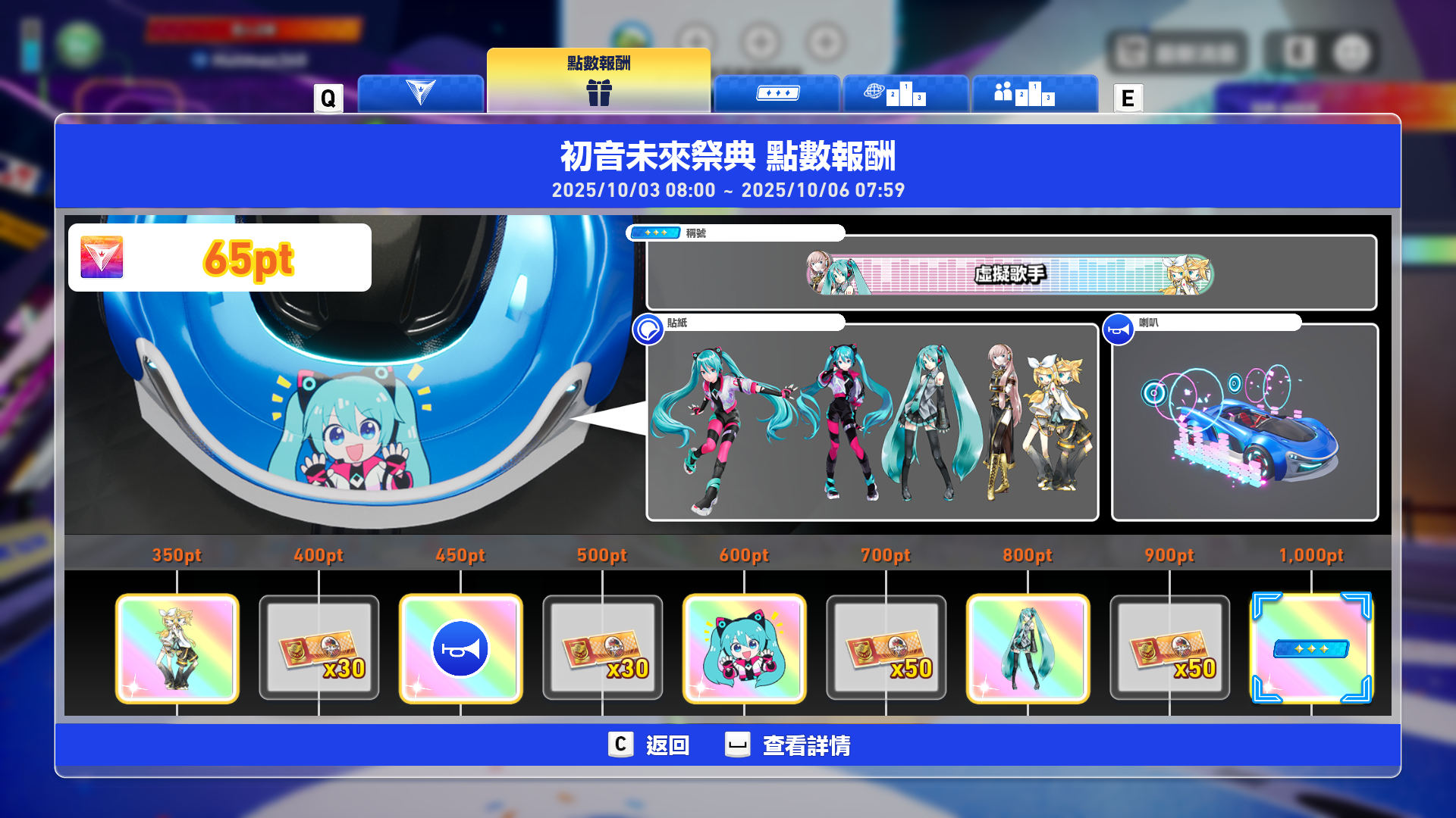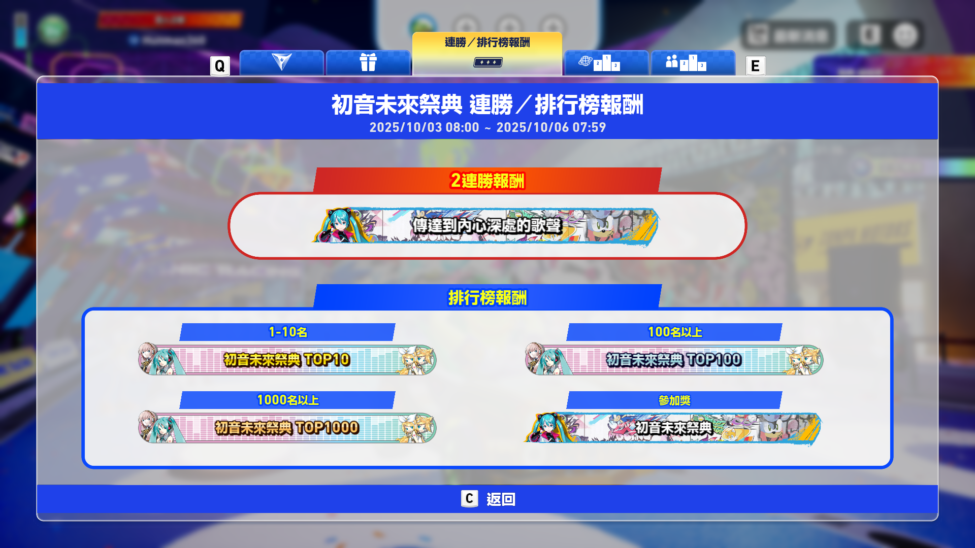 以上週末的初音祭典為例,可以解鎖像這樣的獎勵