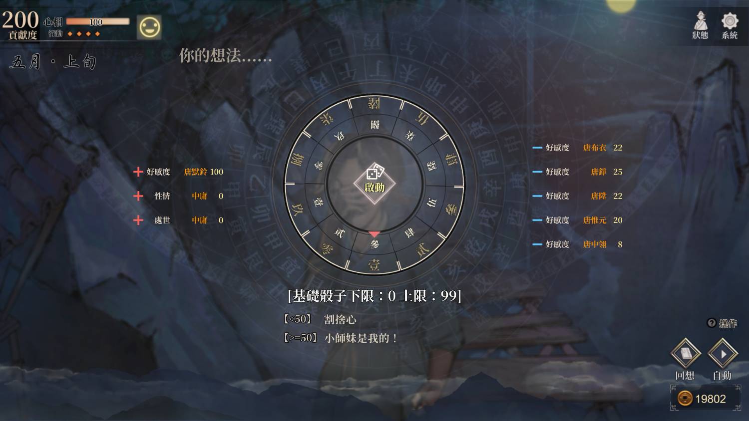 同時門派好感會扣天命骰的點數