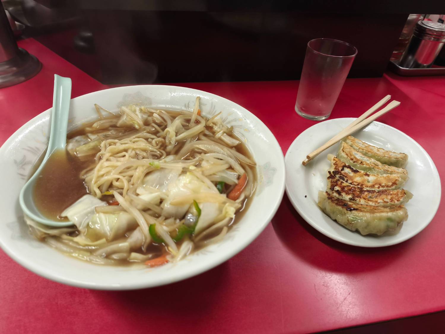 點了野菜拉麵和一盤餃子