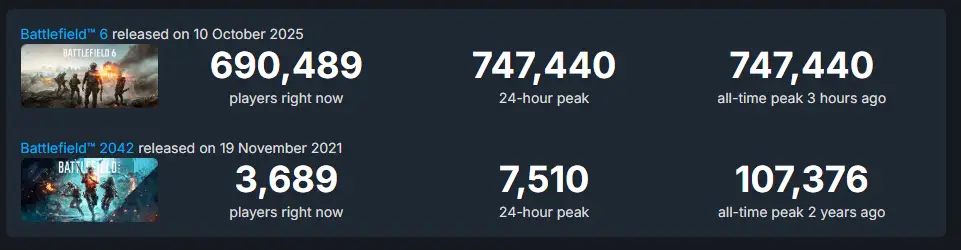 [BF] 戰地風雲6 線上人數是2042歷史最高的7倍