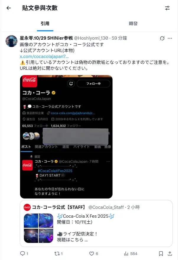 點開底下的引用推文有人在提醒這是詐騙帳號