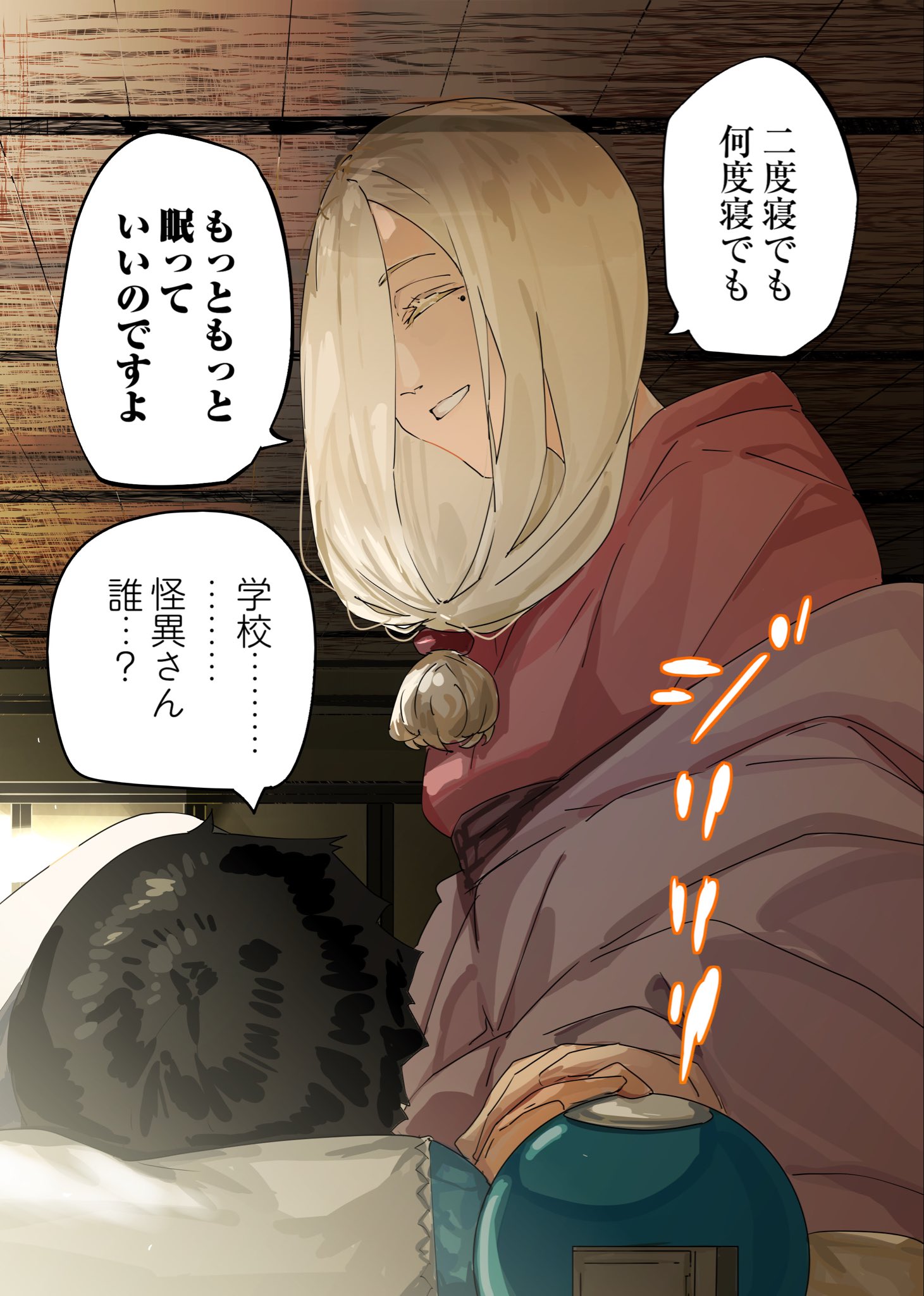 「這樣的話,我接下來準備睡個回籠覺,要不要一起睡呢?」