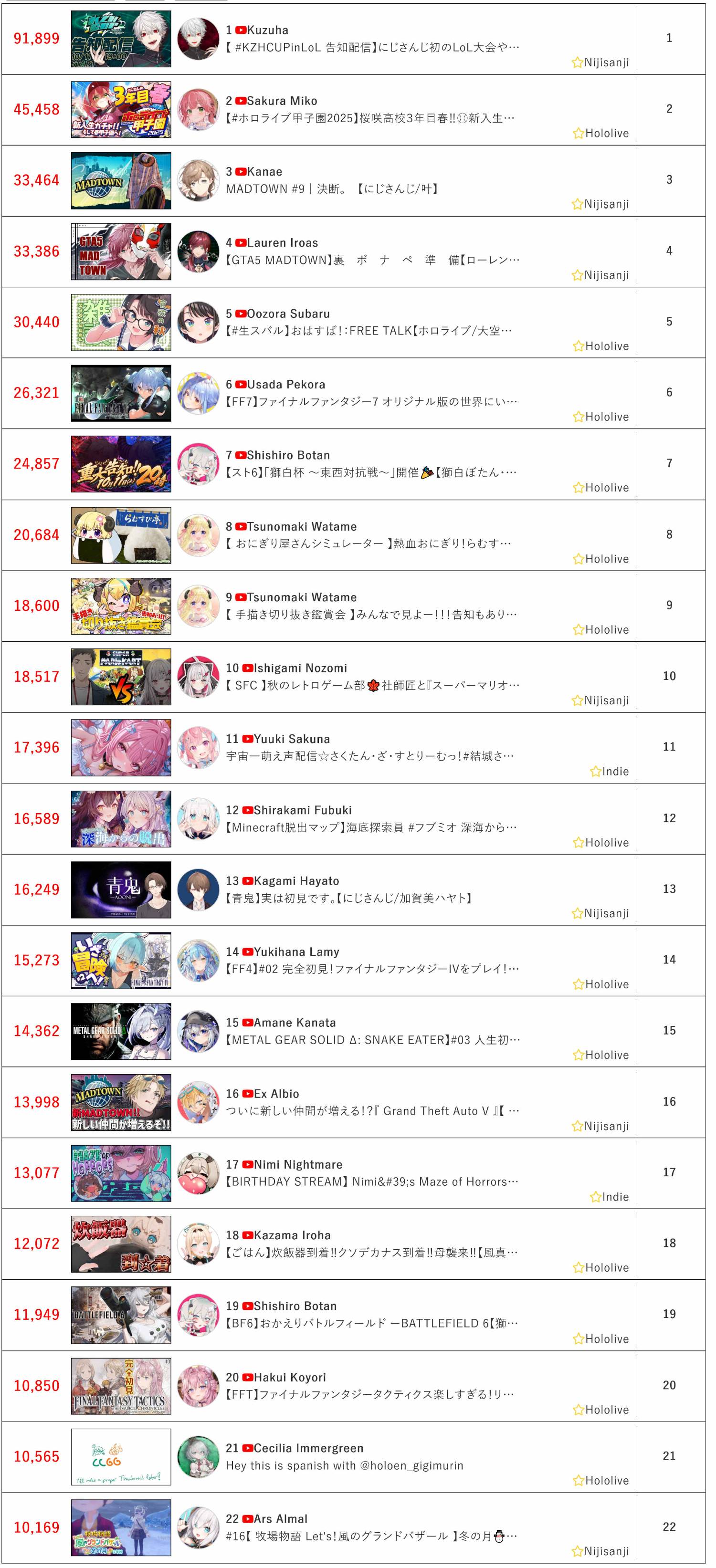 [Vtub] 10/11同接鬥蟲