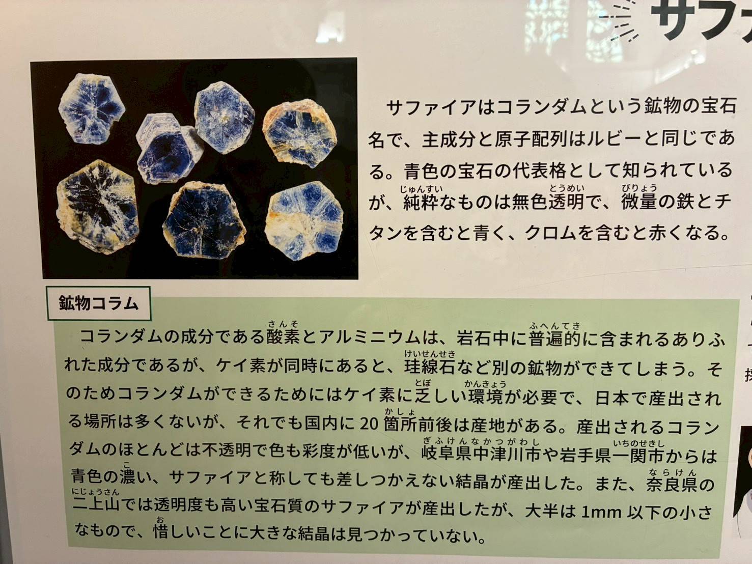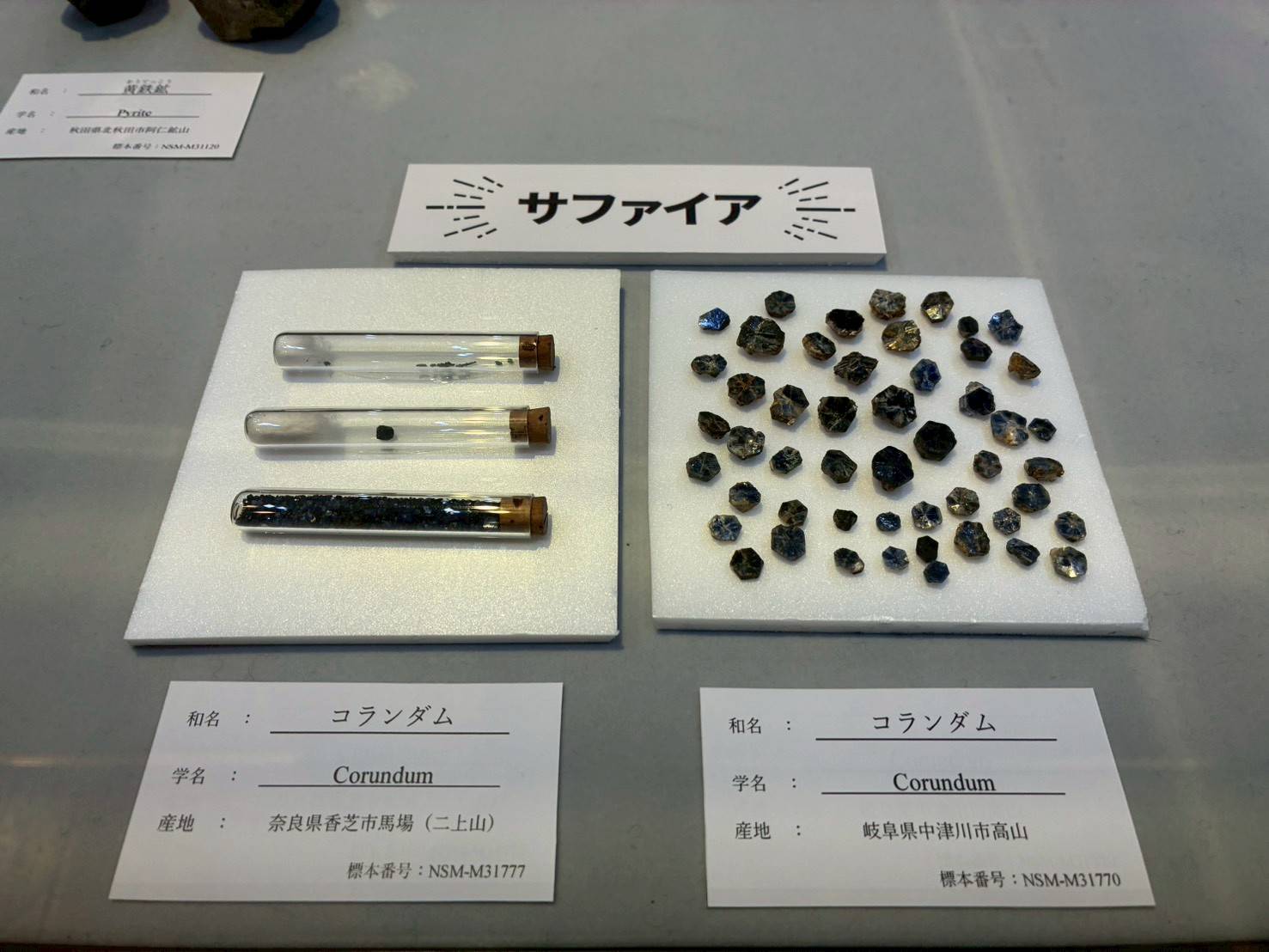 展出黃鐵礦、石榴石以及最重要的藍寶石。