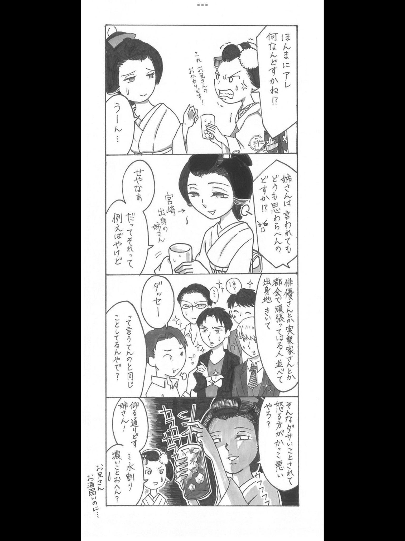 「您說的對呢,姊姊!...是說這杯水割是不是調太濃了?大哥他不太會喝酒說...」