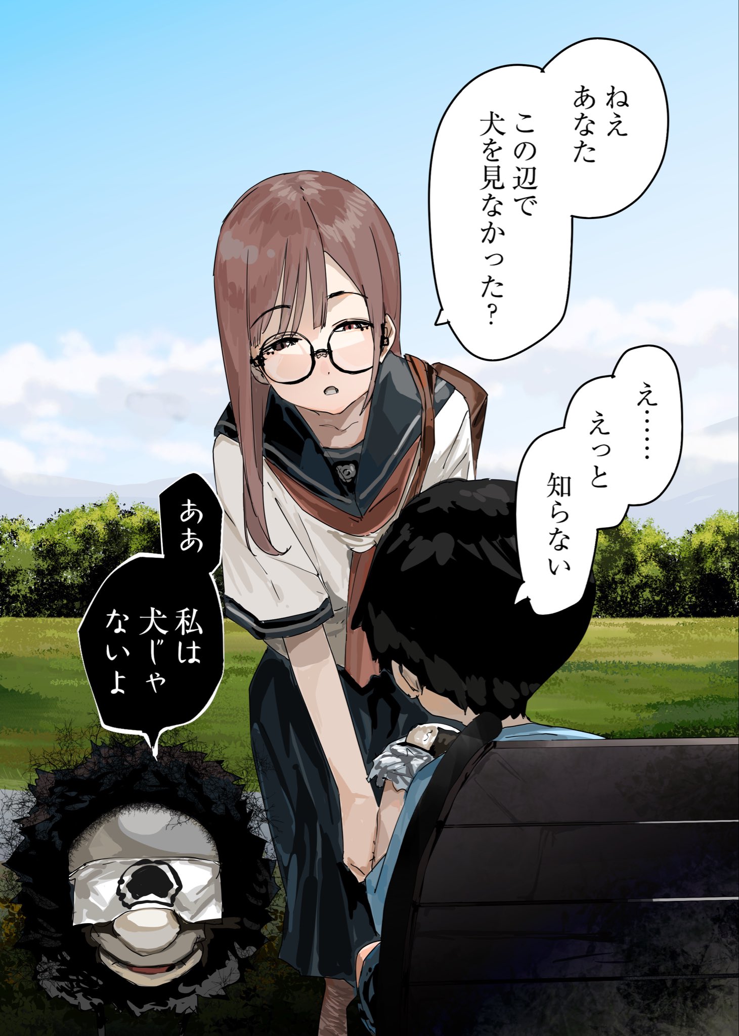 「吶,請問一下,你有在這附近看到過狗嗎?」