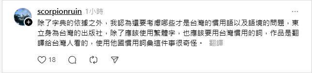 Re: [閒聊] 脆熱議: 東立翻譯用支語還不想改