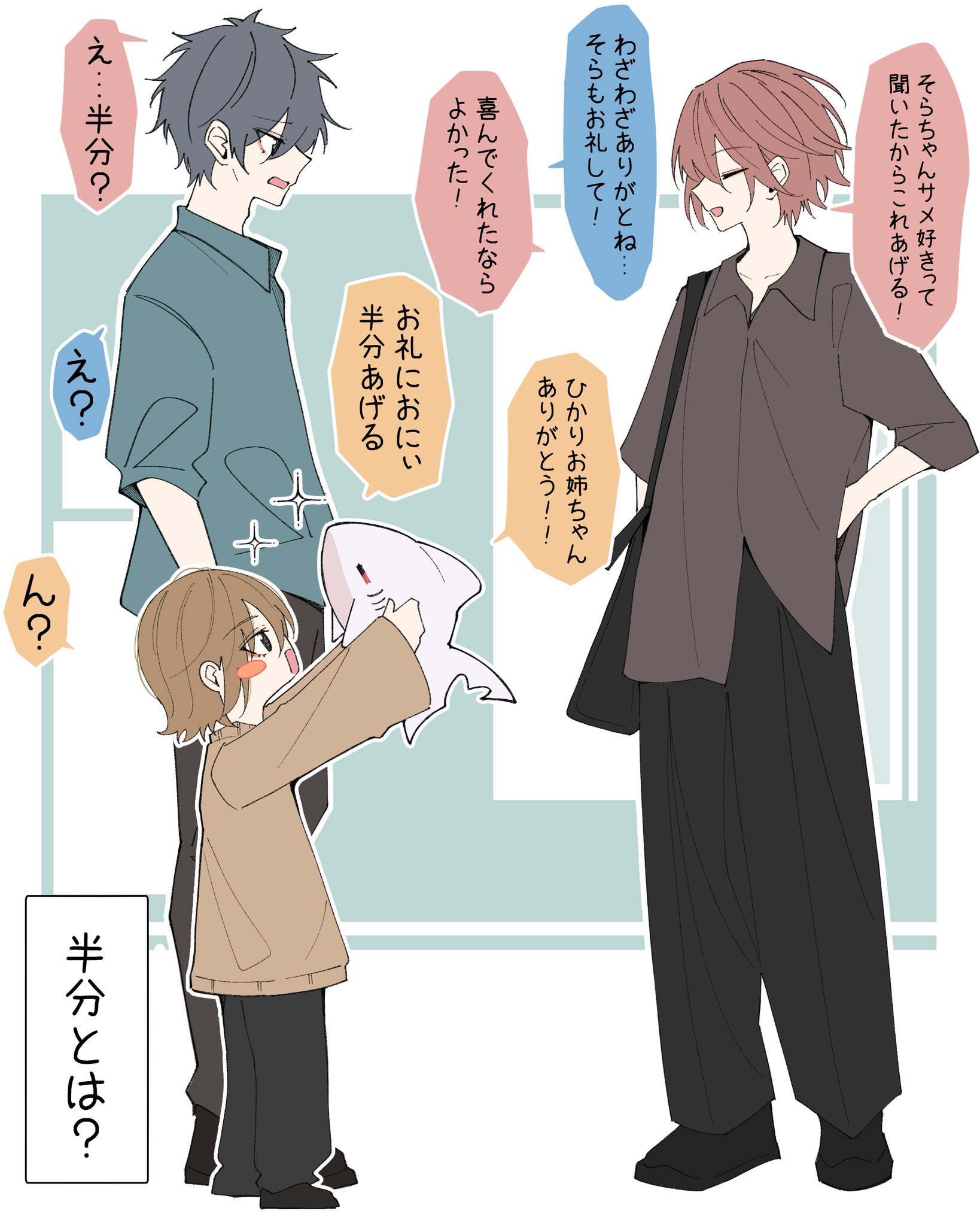 「聽說小空很喜歡鯊魚,特別送給妳的!」