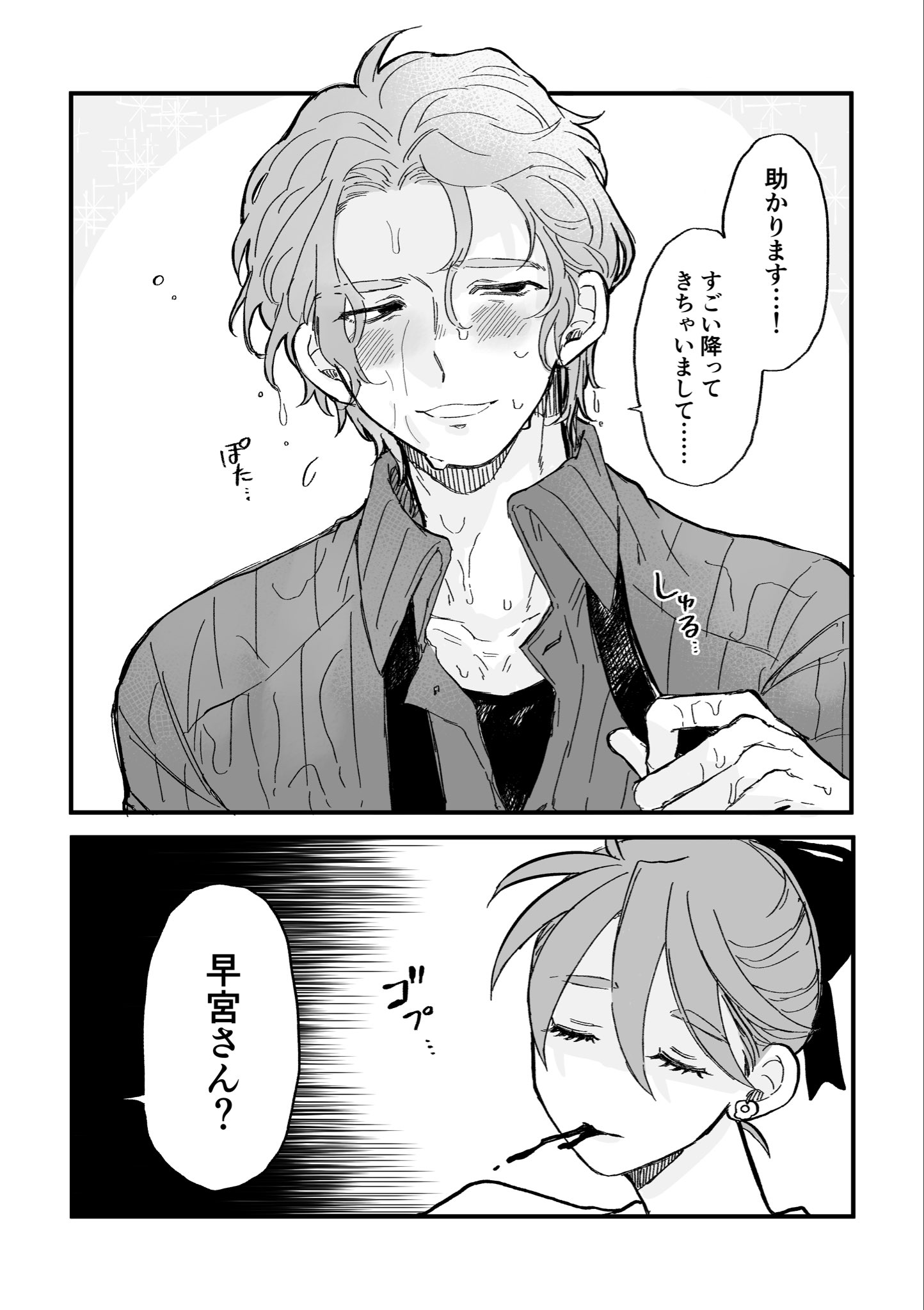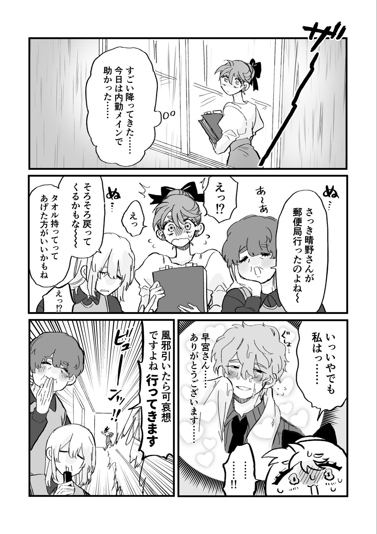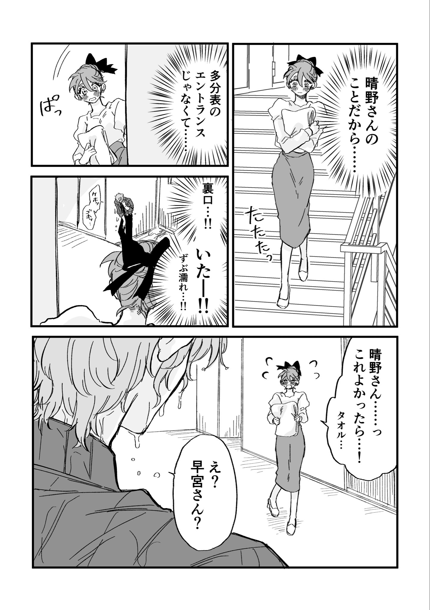 「晴野先生再這樣會感冒的唷趕快擦一擦比較好!」