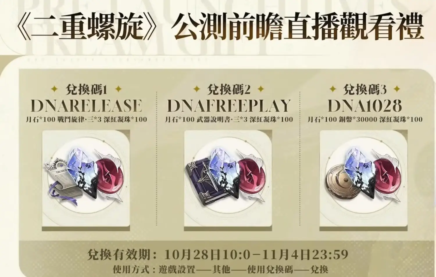 [閒聊] 二重螺旋有什麼獎勵碼/預註冊嗎