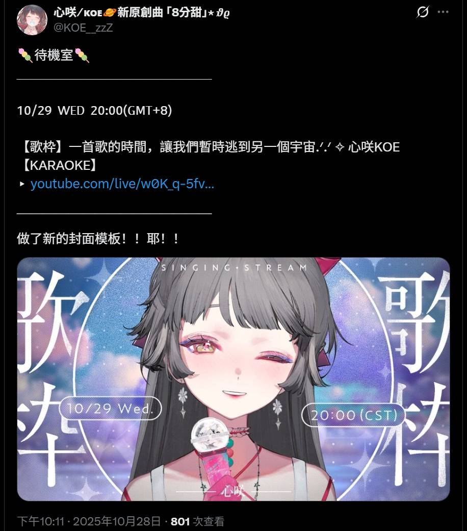 [Vtub] 心咲KOE 歌回 一首歌的時間,讓我們暫時逃到另一個宇宙 #初