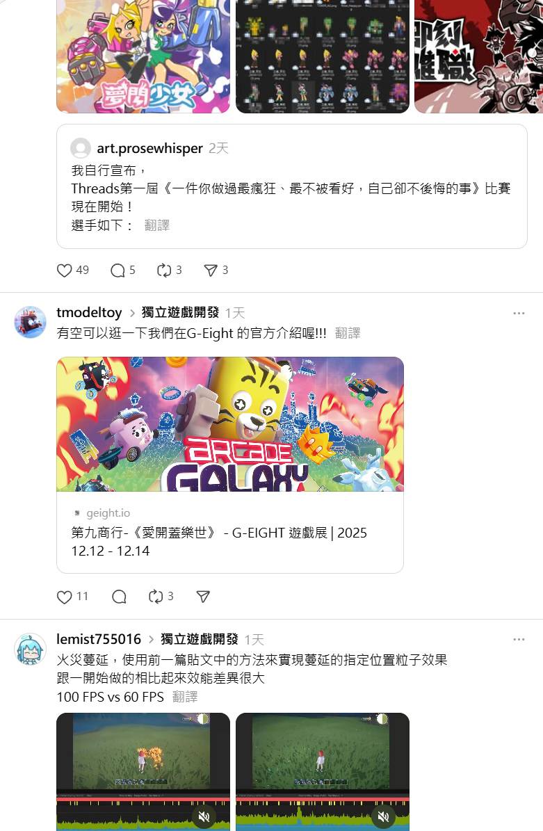 體感來說逛Threads之類的steam遊戲小團隊滿多的