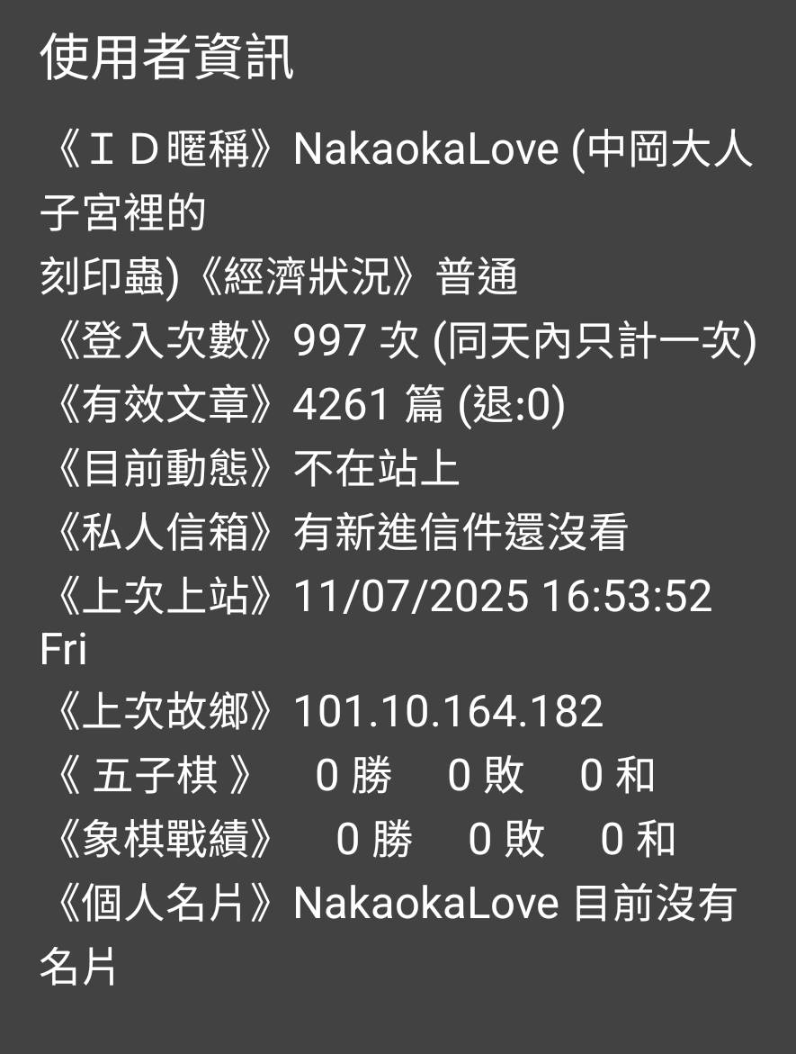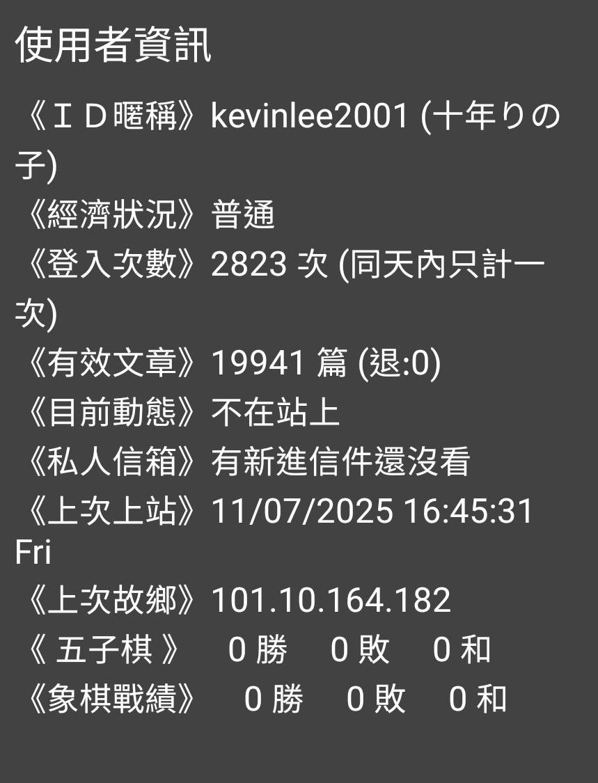 ※ 文章網址: https://www.ptt.cc/bbs/C_Chat/M.1762504716.A.43D.html
