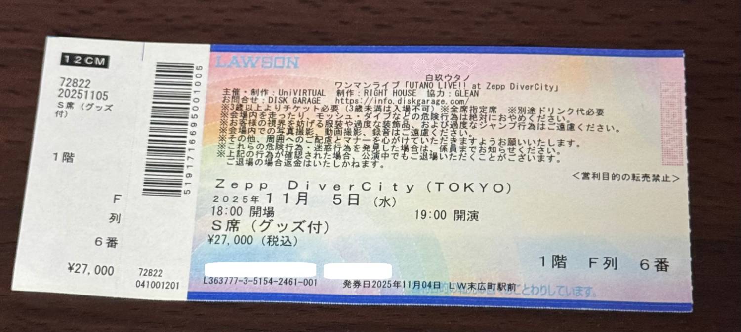 [Vtub] 白玖ウタノ -at Zepp DiverCity- 心得
