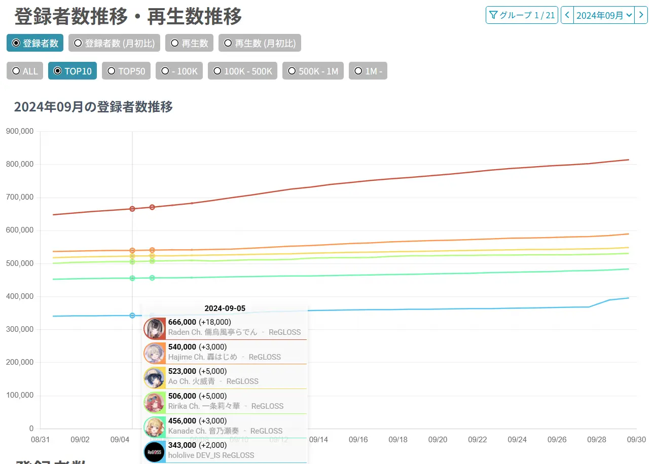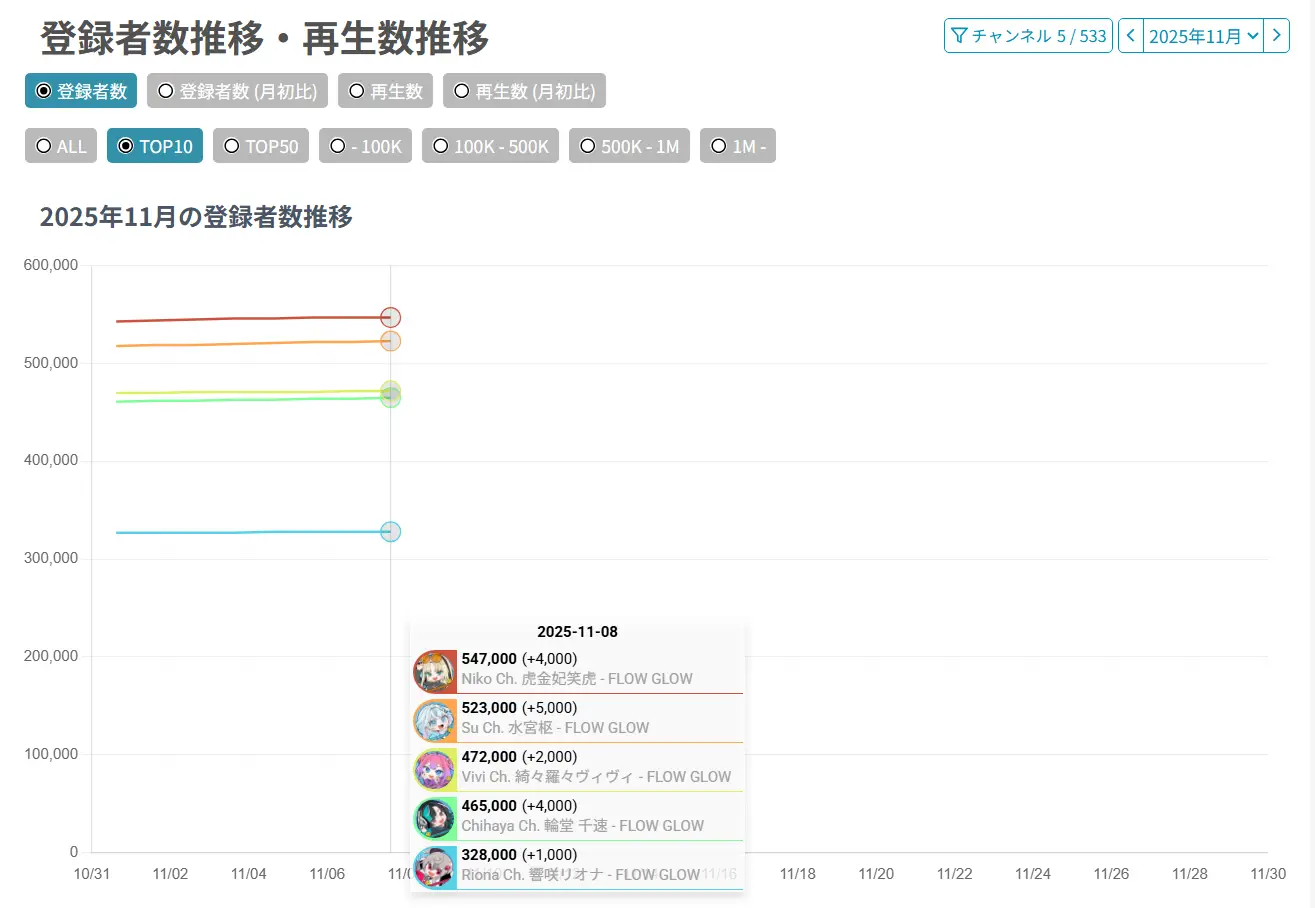 [Vtub] ReGLOSS團 FLOWGLOW團 一週年訂閱數比較