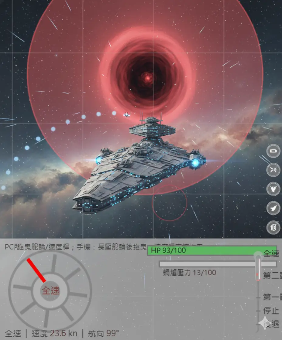 用舵輪控方向,另一邊控制速度,同時要注意鍋爐狀態