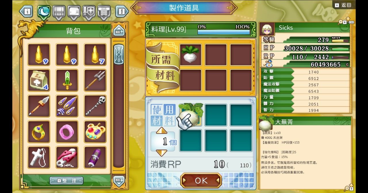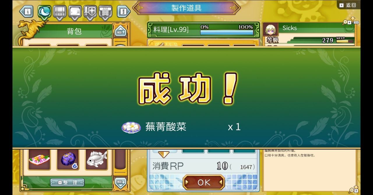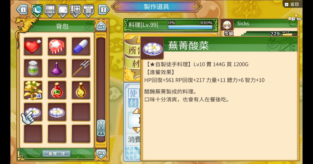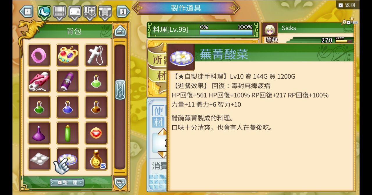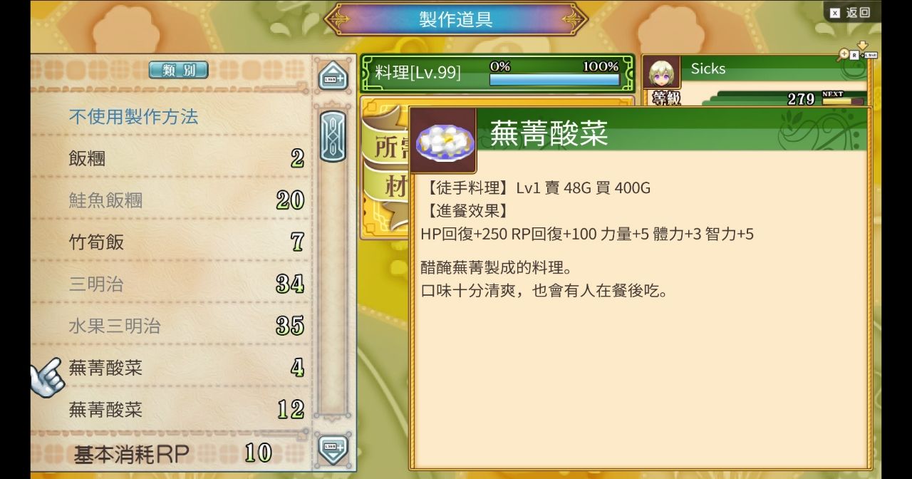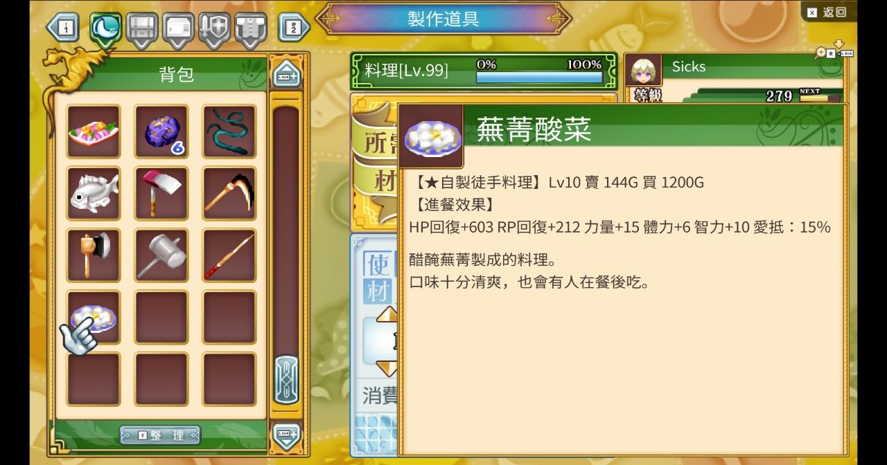 藥品等級偷到10等,能拉高料理等級