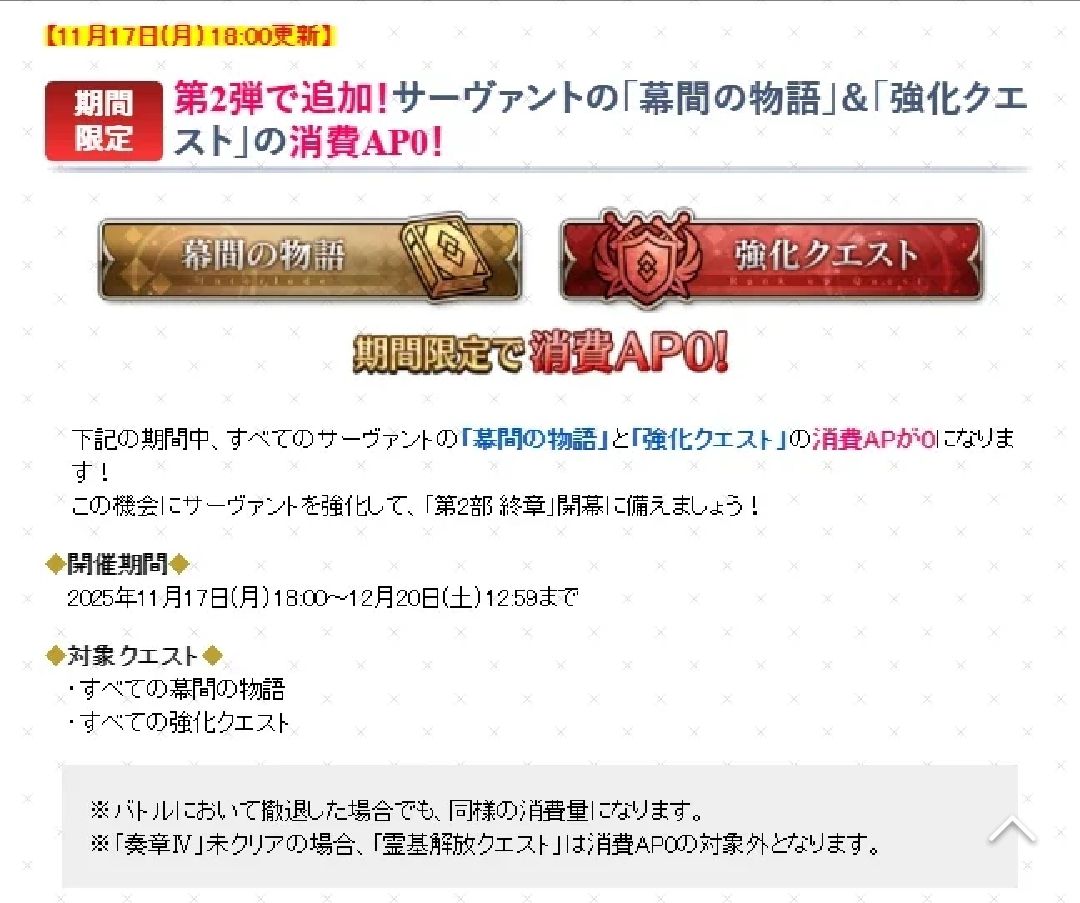 這次終章活動,所有幕間物語和強化任務零ap