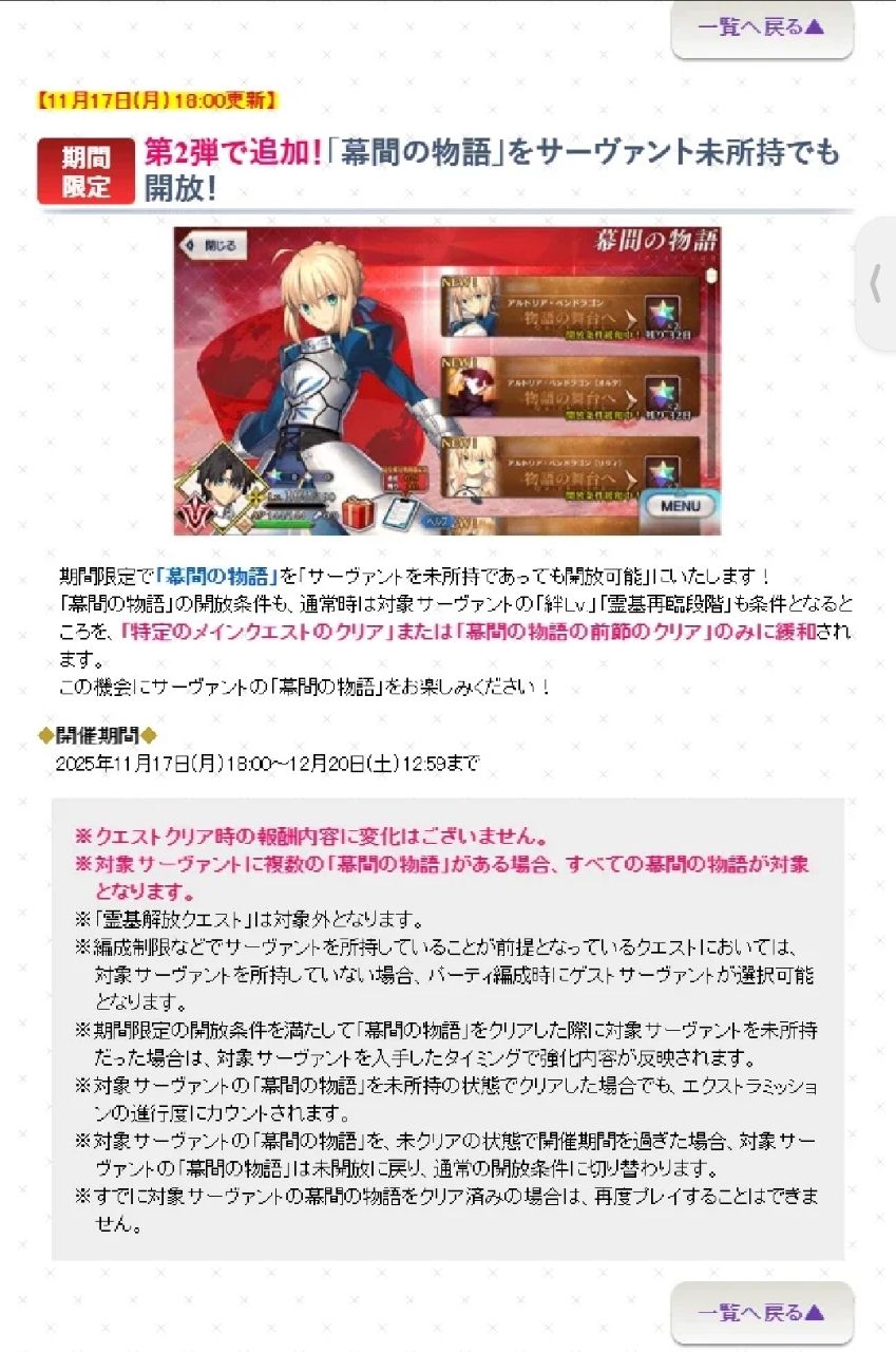 [FGO] 全角色幕間開放