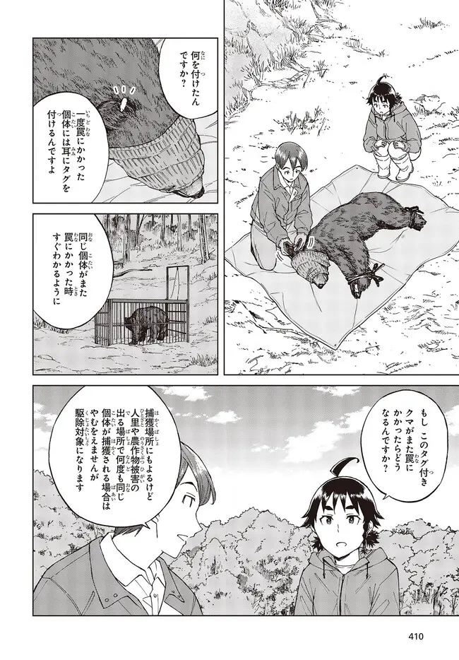 在第53回「熊出沒」中,有一隻被陷阱捉到的熊耳朵上有標誌,是被捕獲過的記號。