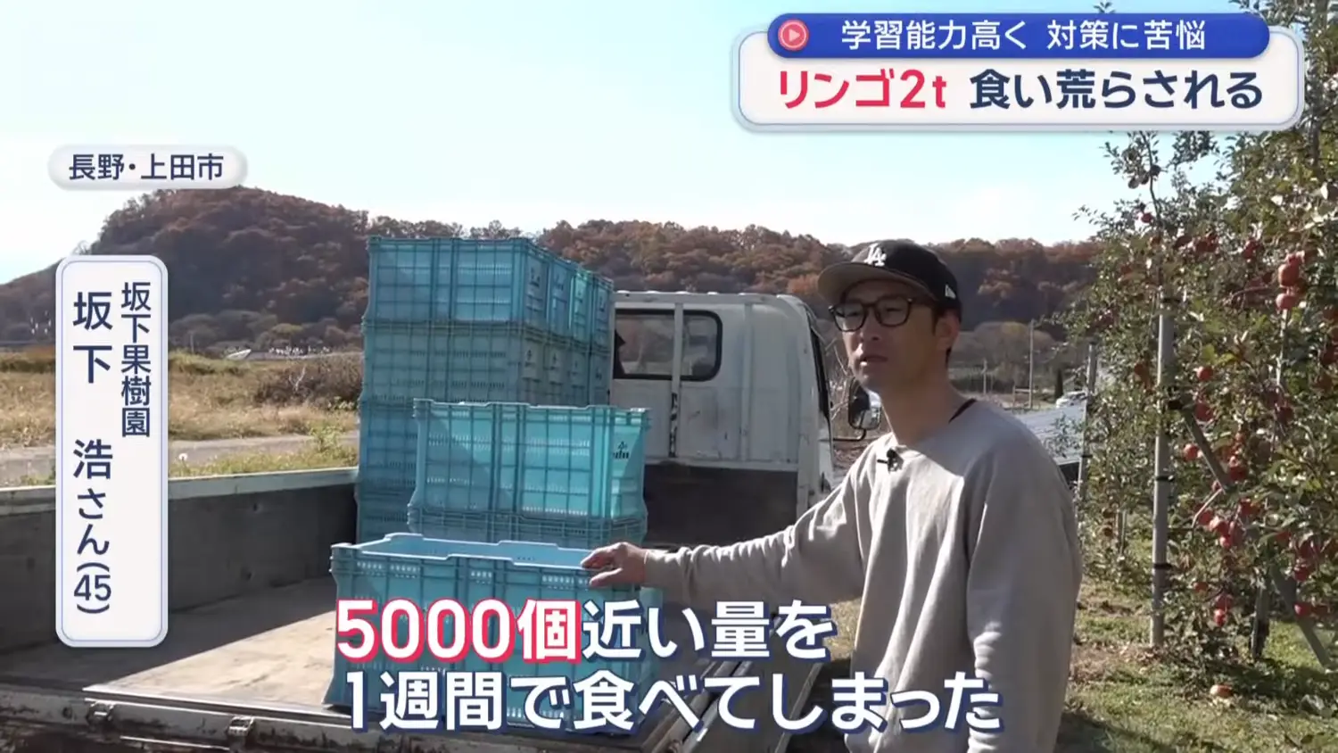 根據苦主果園主人的說法,被吃掉的蘋果約2噸,至少也損失200萬日圓。