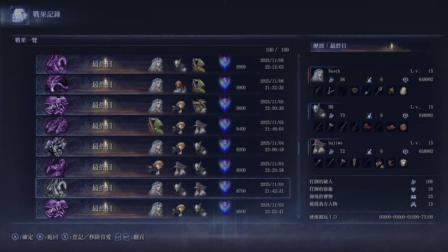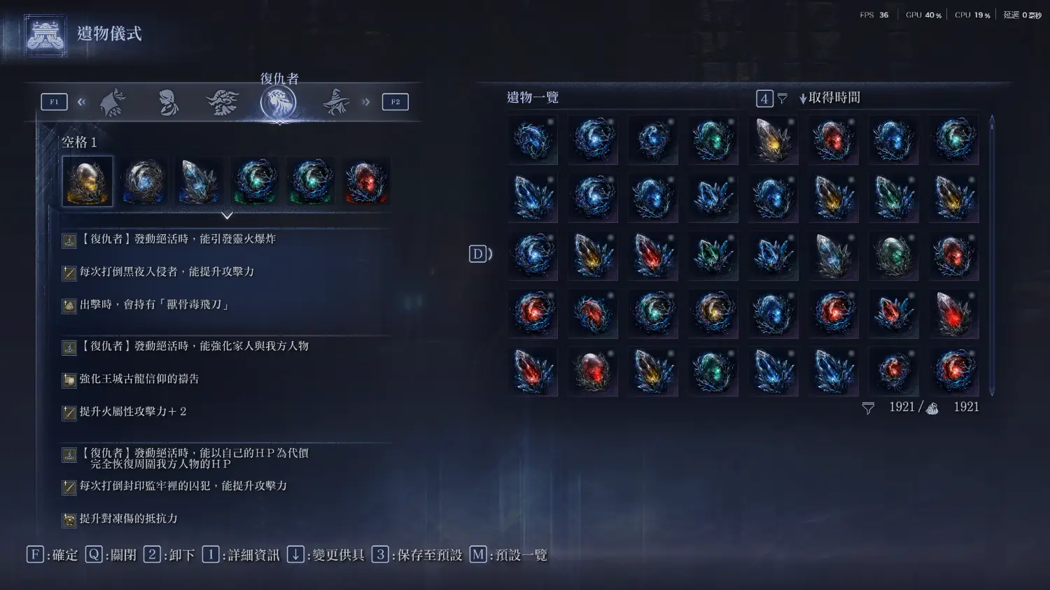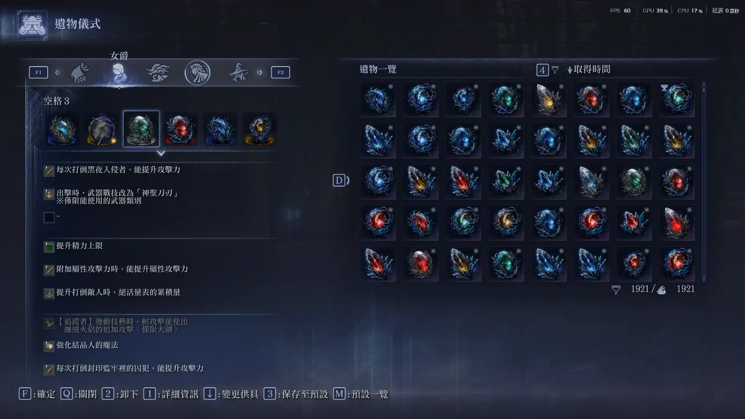 也先說一下遺物組合,同上述女爵的部分,普通遺物建議罪人+監牢,深夜遺物折通用屬性