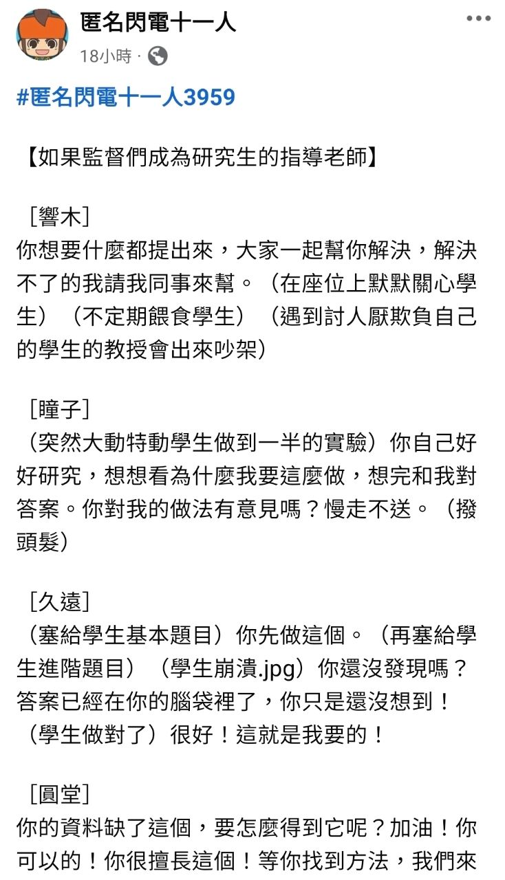 [閒聊] 如果閃電十一的監督成為論文指導教授