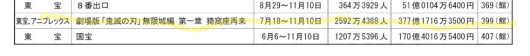 1. 日本票房 400億