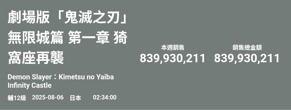 [閒聊] 鬼滅之刃 無限城 情報票房彙整閒聊樓