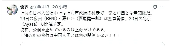 : 成為這幾天少數幾個能在中國完成演出的日本藝人