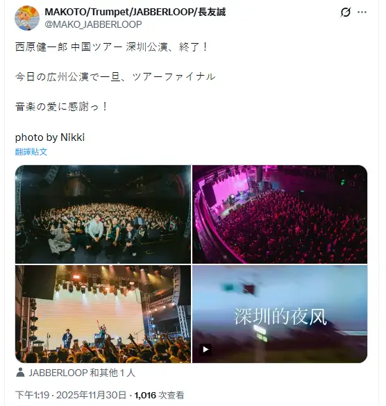 看推特廣州跟深圳昨天今天的演出也正常