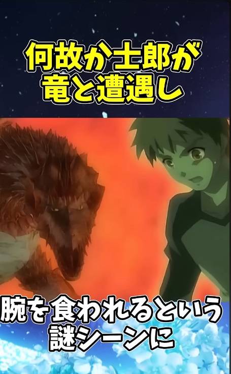 因為是全年齡所以直接被大改成一隻龍吃掉士郎手臂的謎之場景