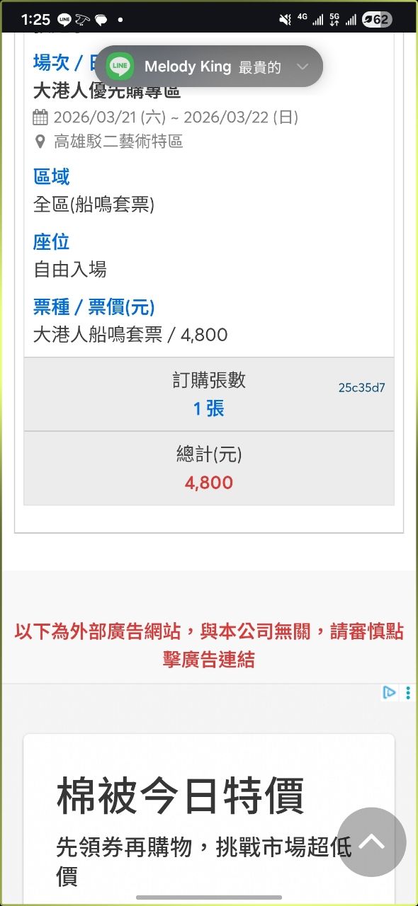 然後不要放棄,會一直有人棄票,要一直刷新去轉圈圈,我就是先搶一般票12:20失敗再去