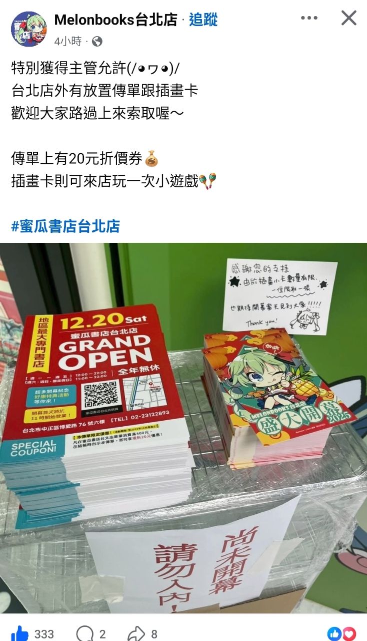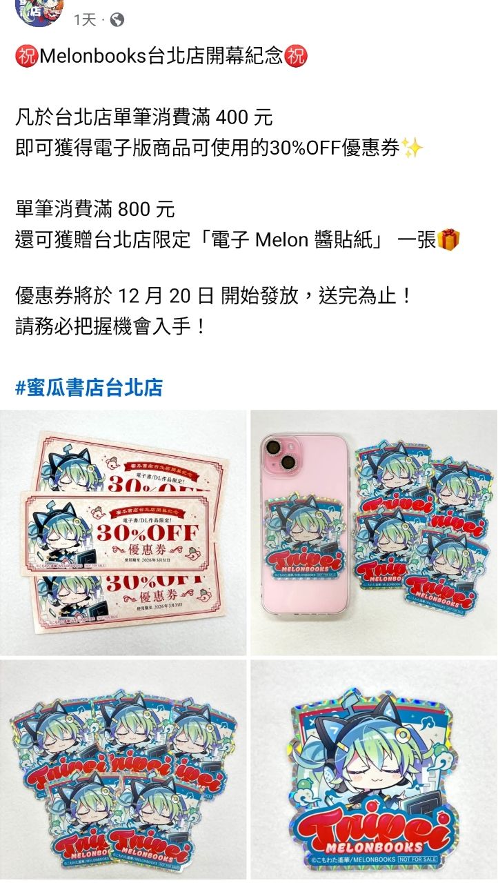 [情報] melonbooks台北店20元折價券