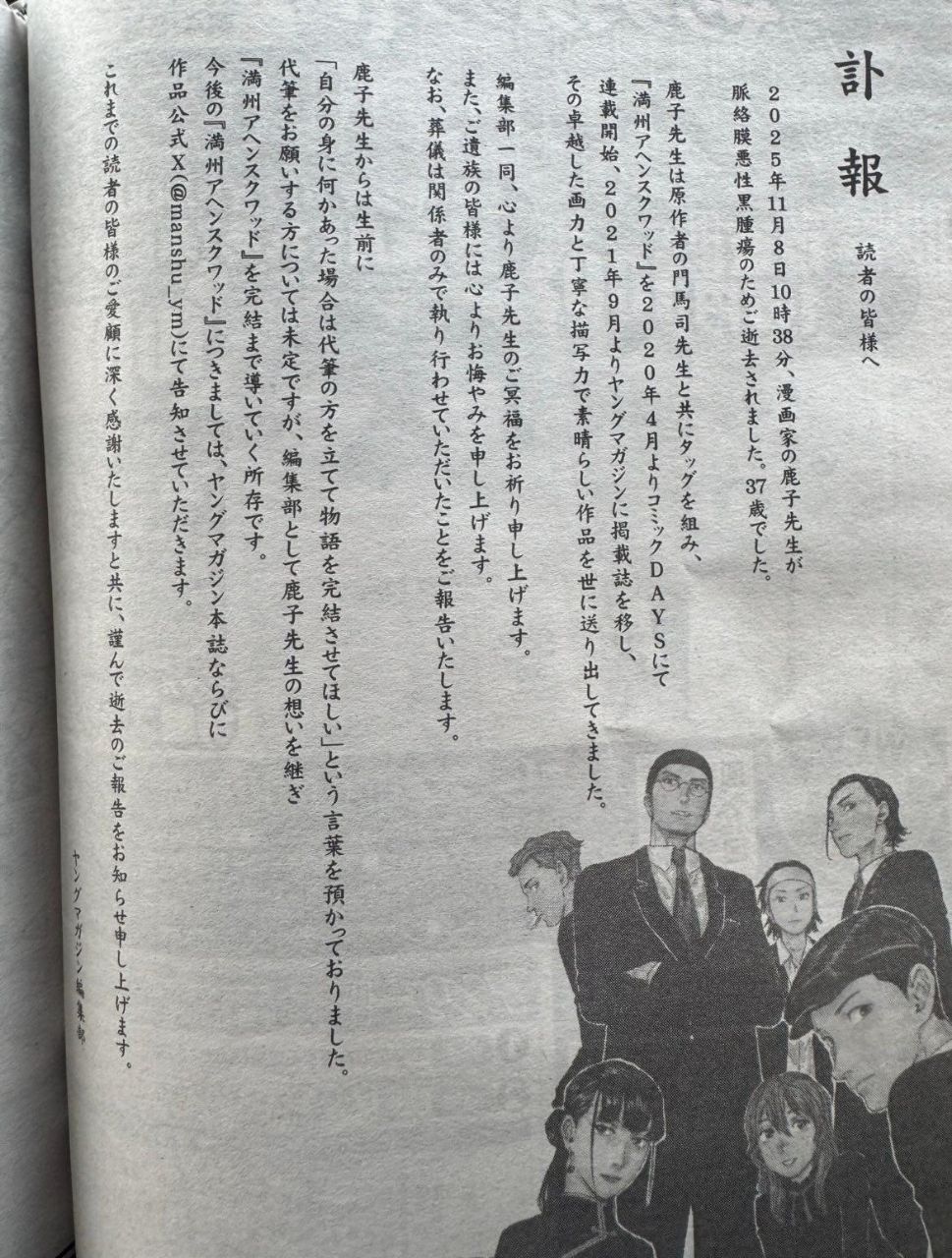 [情報] 滿州鴉片小隊作者鹿子過世 享年37