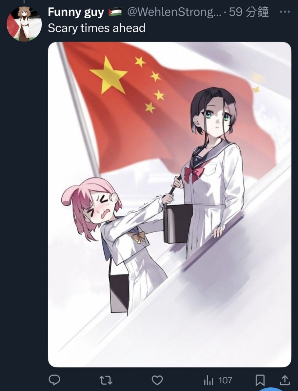 有人直接給他加了一張五星旗