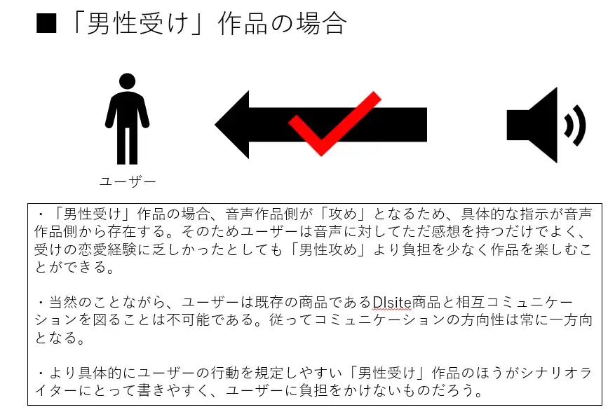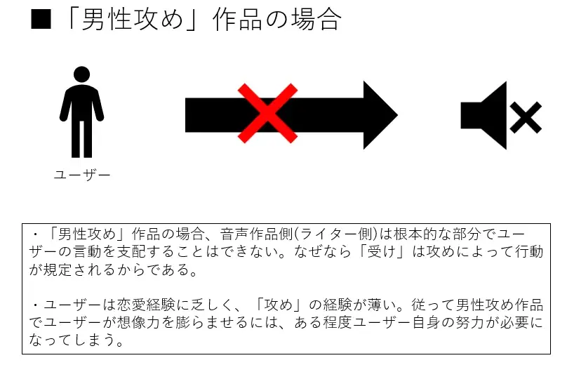 音聲作品的腳本很難寫出從男性自身發起的攻勢