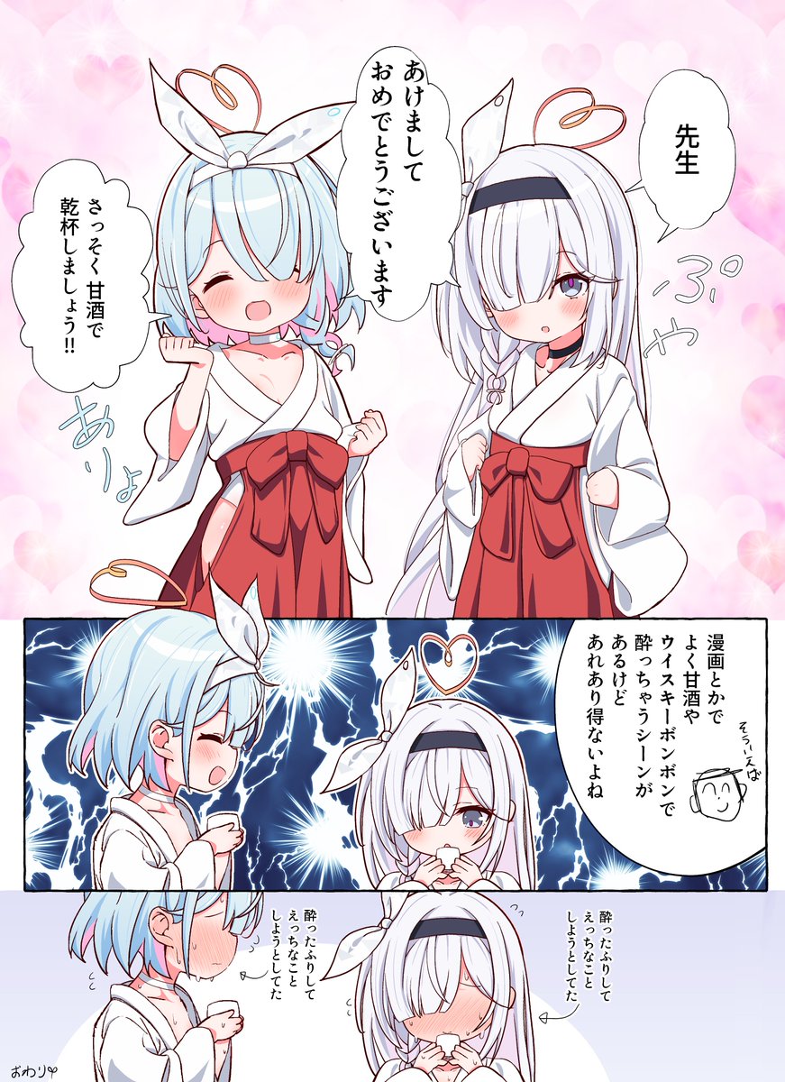 藍:來喝甘酒吧,乾杯!