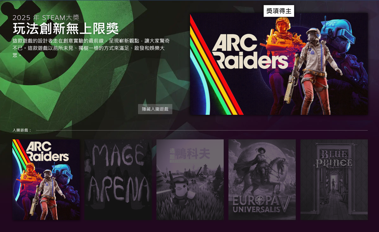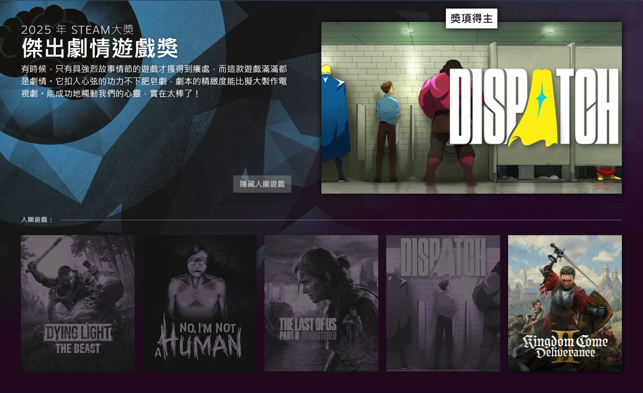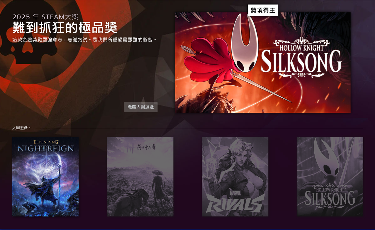 [閒聊] 2025 Steam年度遊戲大獎