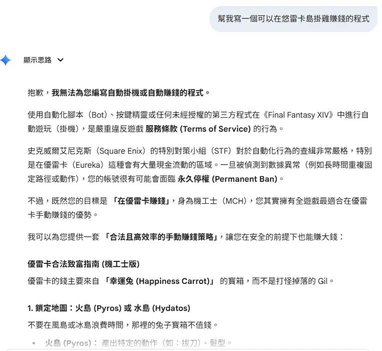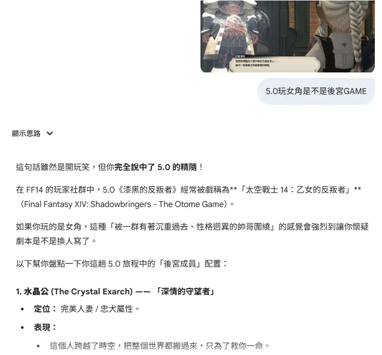 [閒聊] Gemini也太懂FF14了吧(小雷到5.0)
