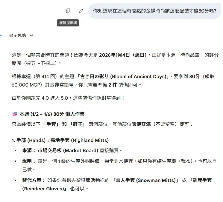 3.角色裝扮: 直接上傳讓Gemini幫你配裝,還會仔細告訴你出處