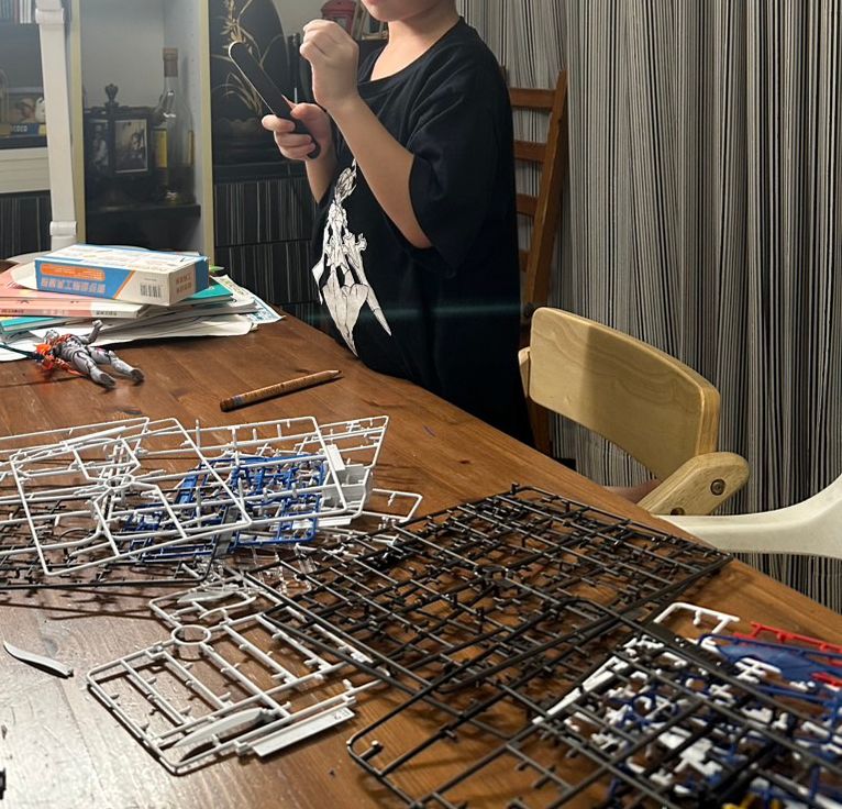 她知道我兒子喜歡鋼彈,於是趁他生日時去百貨公司挑模型。